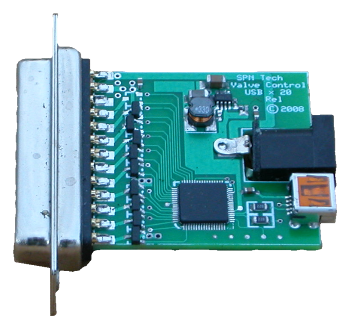 The PC Board from SPN's USB Interface Module controls the Solenoid Block above.